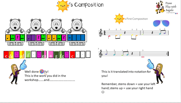 Over the twenty years I’ve been teaching Music, I’ve seen what students really respond to and that is fun, colour and creativity. I take a multi-faceted approach to teaching piano: pattern-play, composition, chord-play, improvisation, off-bench activities, technology and workshops (on and off-line) are a huge part of my teaching strategy. I bring the best resources I can to my studio for my students to benefit from.